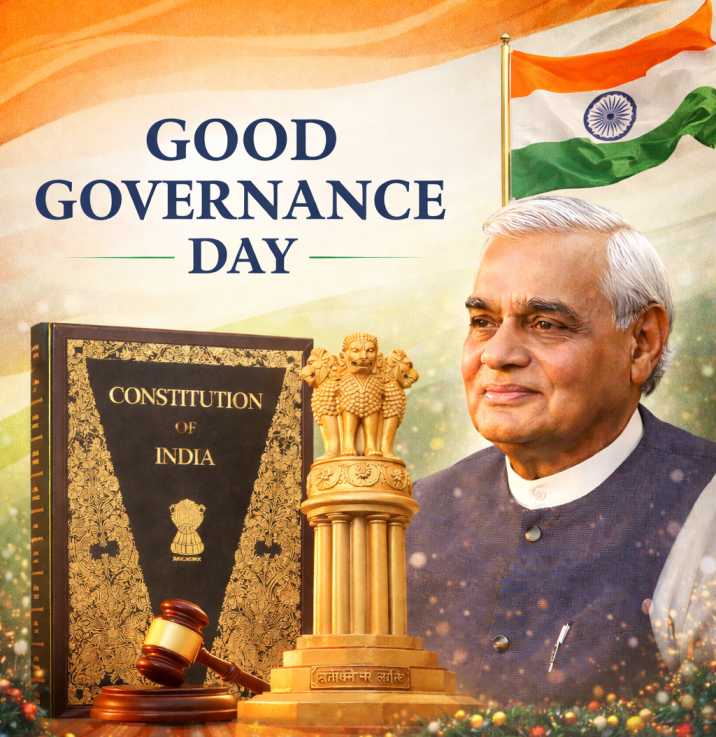 Good Governance Day is observed every year on 25th December in India to commemorate the birth anniversary of former Prime Minister Atal Bihari Vajpayee. The day highlights the importance of transparency, accountability, efficiency, and people-centric administration in governance. It aims to promote ethical leadership, responsive public services, and effective implementation of policies for the welfare of citizens. Good Governance Day reminds us that a strong nation is built on honest administration and responsible decision-making that serves the needs of the people.